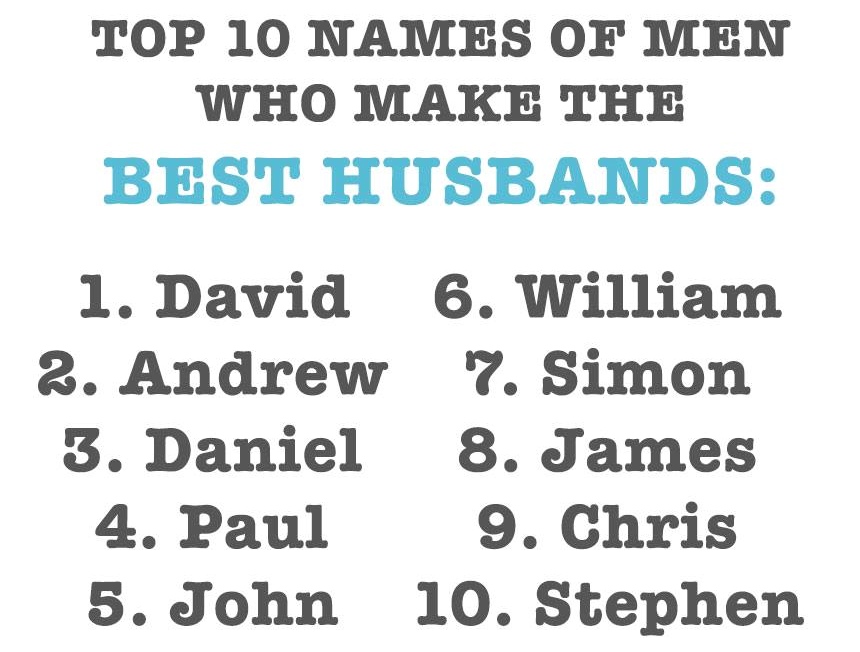 Top names of men who make the best husbands .